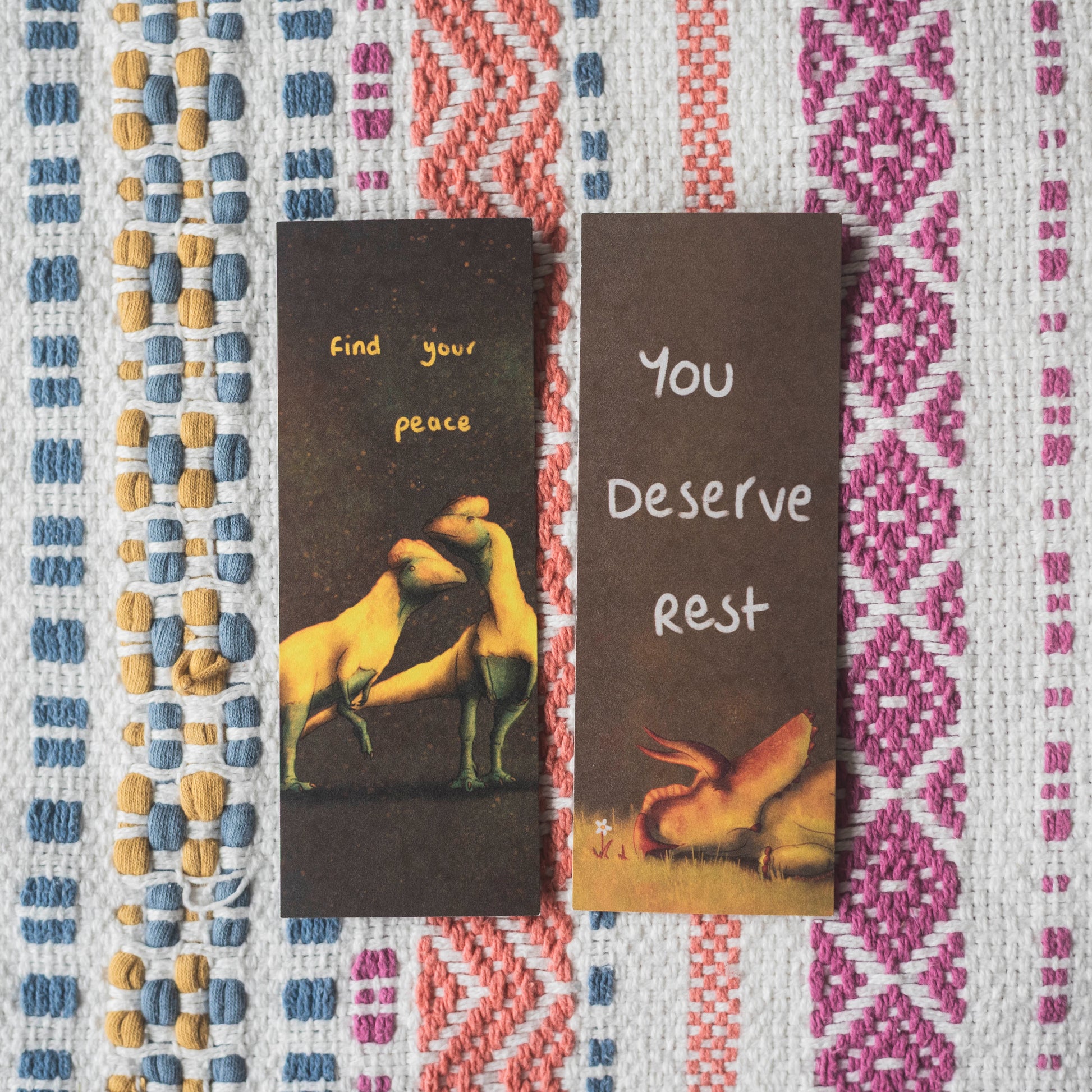 Each bookmark is approximately 148mm x 55mm. They are printed using recycled card.